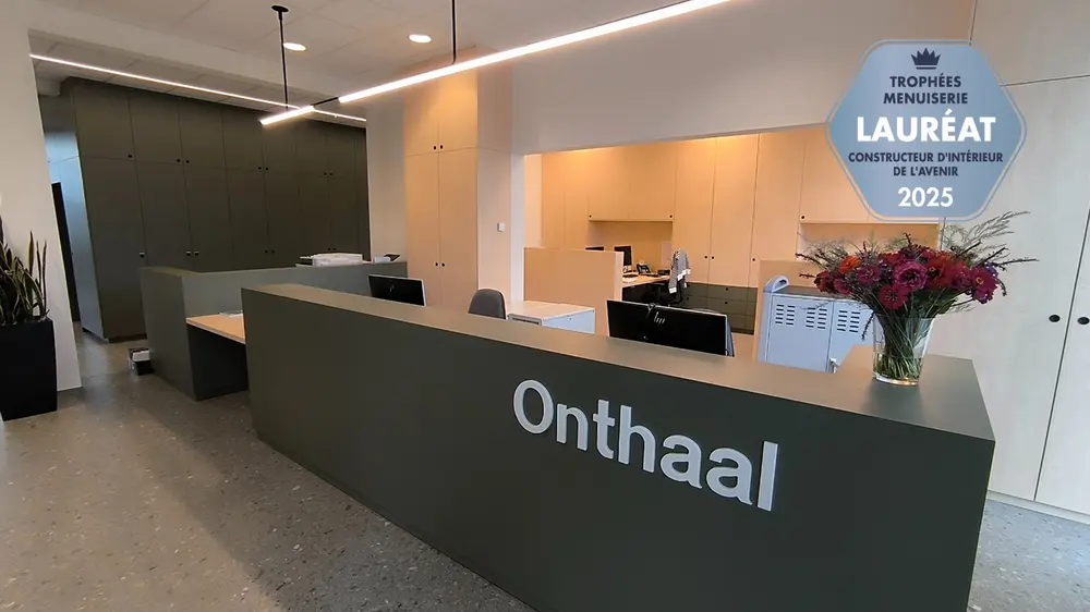 Dans le cadre de la rénovation de la réception du VITO Hoogstraten, les étudiants de la 6e année de menuiserie intérieure et d'aménagement intérieur ont réalisé une toute nouvelle réception, sur la base du projet professionnel de LV-Architects.