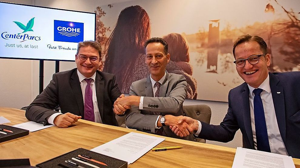 Center Parcs heeft eind november het startsein gegeven voor een meerjarig partnership met GROHE, internationaal toonaangevend leverancier van sanitaire producten, innovatieve en duurzame watertoepassingen. Het partnership markeert het begin van nieuwe samenwerkingsvormen die Center Parcs in de komende jaren met verschillende grote partijen wil sluiten. Center Parcs toont hiermee de ambitie om haar positie als marktleider in de recreatiesector te versterken door haar gasten voortdurend te verrassen. GROHE zal in de vakantieparken van Center Parcs zijn meest duurzame en innovatieve producten introduceren, zoals slimme douchesystemen en waterbesparende douchekoppen, kranen en toiletten. Een bijzondere en tastbare innovatie is de GROHE Water Experience in de waterwereld van AquaMundo. Gasten kunnen bij de SmartControl douchesystemen bijvoorbeeld genieten van een luxe multifunctionele douche. In diverse parken van Center Parcs wordt ook het GROHE Sense Guard waterbesturingssysteem geïntroduceerd, een slim beveiligingssysteem dat tussen de waterleiding wordt gemonteerd en in een vroeg stadium kleine of grote waterlekkages of een gebroken waterleiding signaleert. Bij lekkage wordt de watertoevoer meteen afgesloten, waardoor grote waterschade voorkomen wordt en er water wordt bespaard. Zowel Pascal Ferracci, CEO van Center Parcs Europe en Rogier van Dis, Regional Director van GROHE Benelux zeggen vertrouwen te hebben dat het partnership naar de toekomst toe een nieuwe standaard kan zetten op gebied van duurzaamheid, beleving en comfort.